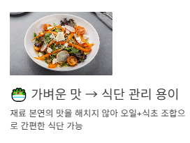 1) ‘가벼운 맛’ 덕분에 식단 관리가 쉬움
