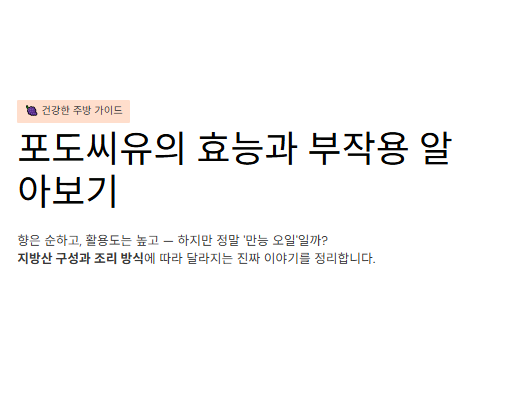 오늘은 포도씨유의 효능과 부작용을 균형 있게 정리하고, 안전하게 쓰는 방법을 단계별로 알려드릴게요.