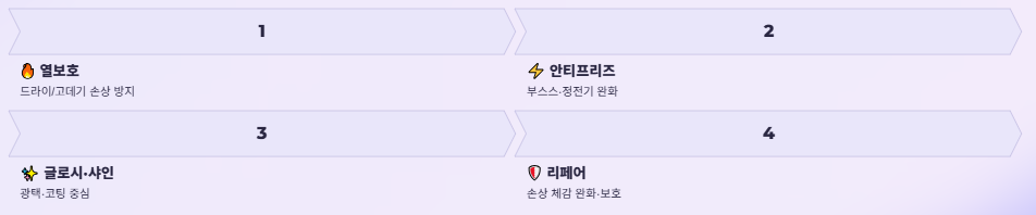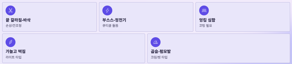 - 염색·탈색·열기구 사용 잦음 : 열보호(Heat Protection) 표기 제품 우선