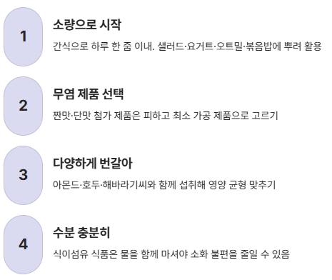 심혈관 건강, 포만감 유지, 영양 보충 측면에서 도움이 될 수 있으며, 식습관을 조금 더 건강하게 바꾸는 데도 유용합니다.